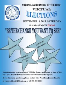 Virginia Association of the Deaf (VAD) Deaf Awareness Month – 2024 theme from World Federation of the Deaf for is “Love and Trust”